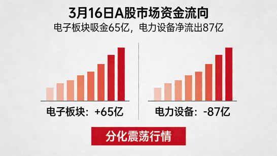3月16日A股分化震荡!电子板块吸金65亿,电力设备遭净流出87亿