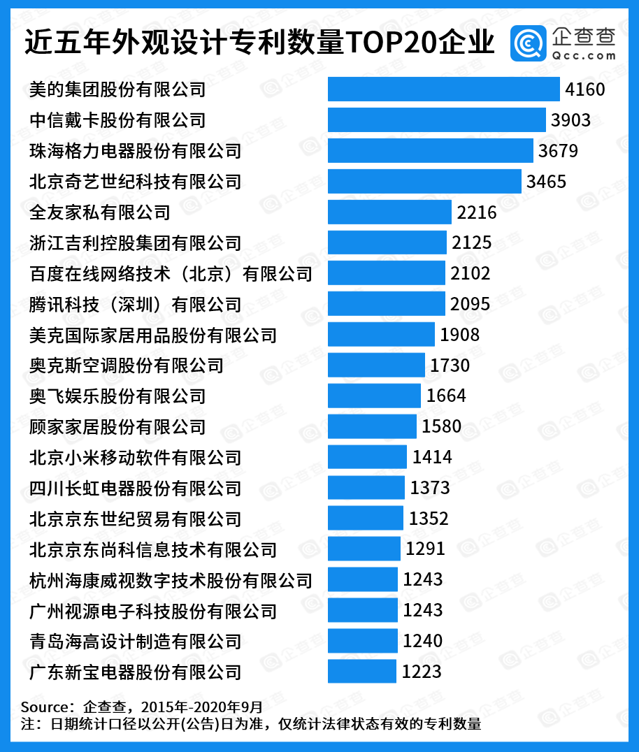 日前,企查查大数据研究院正式推出《企查查中国专利20强企业榜单》,带大家盘点近五年来我国专利数量领先的企业,报告分为三个部分:发明专利企业榜、实用新型专利企业榜、外观设计专利企业榜。
